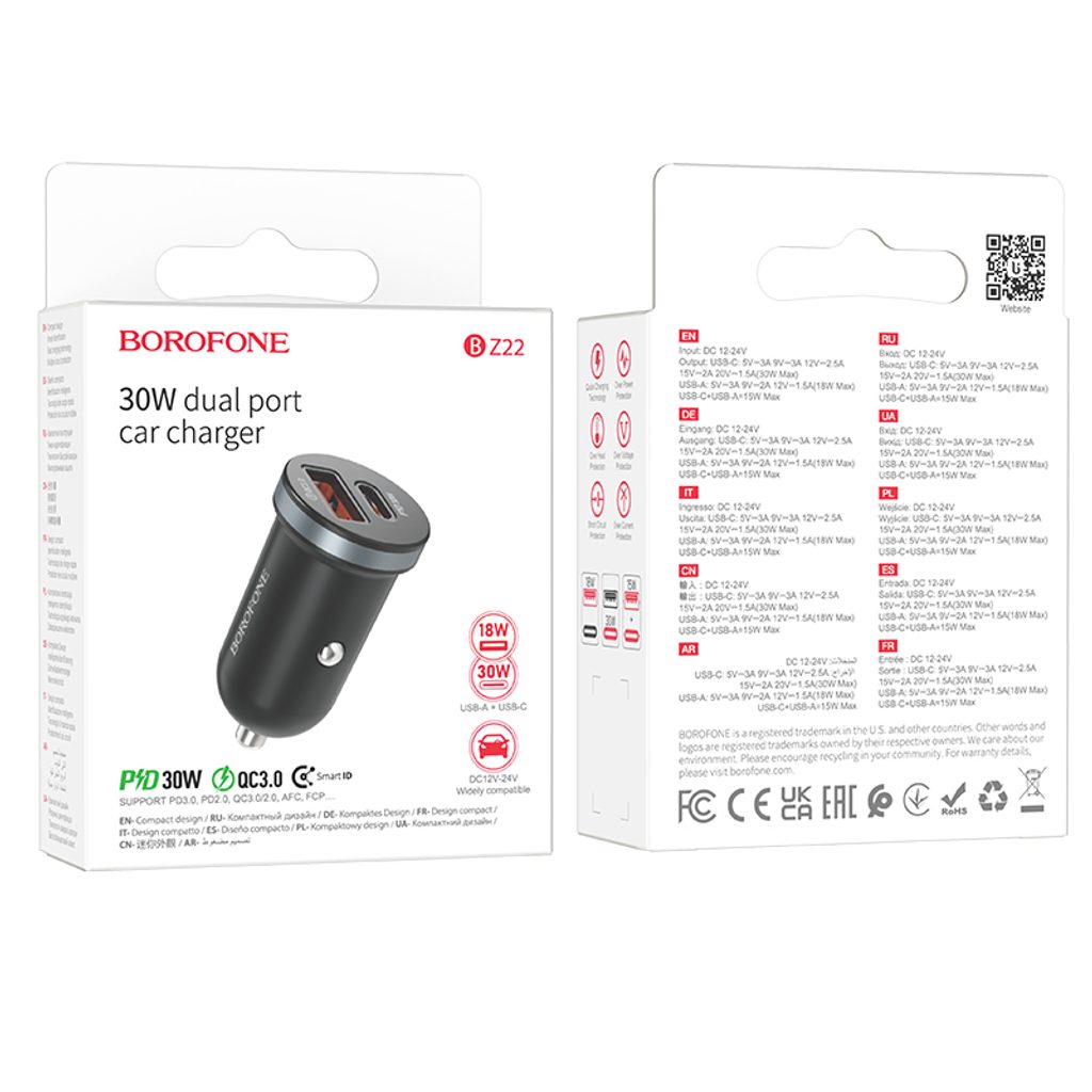 Borofone BZ22 Scenery Kfz-Ladegerät, USB + USB-C, QC 3.0, PD 30W, schwarz