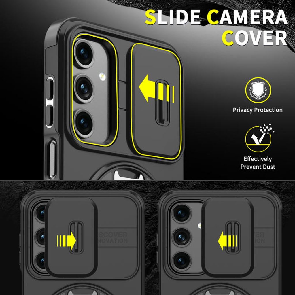 Schützen Sie Ihre Linsen vor Staub, Kratzern und anderen Beschädigungen. Der Schiebemechanismus ist einfach zu bedienen und fügt sich elegant in das Design der Hülle ein. Halten Sie die Kamera sauber und bereit für perfekte Aufnahmen!