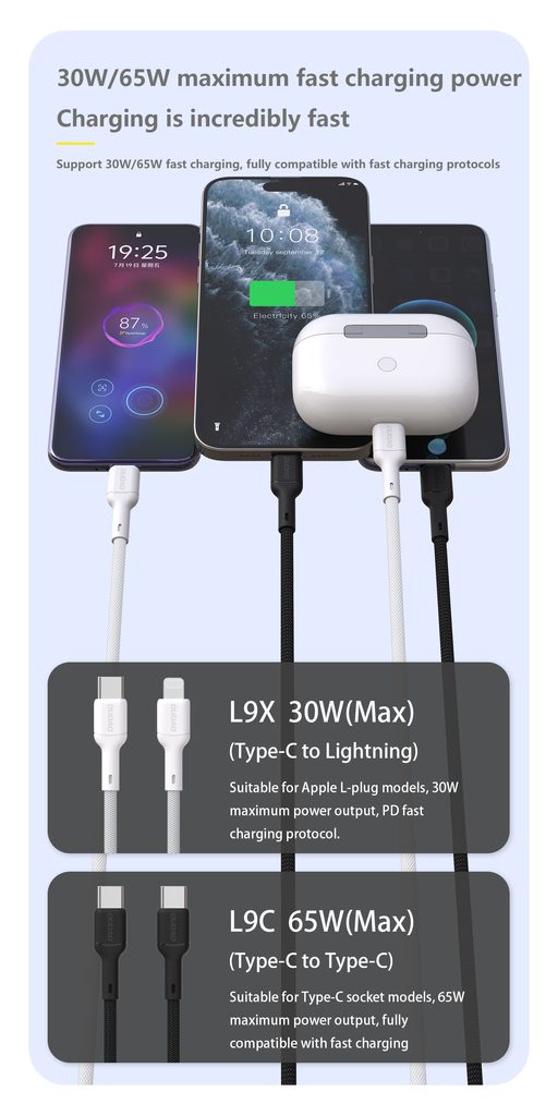 Entdecken Sie Zuverlässigkeit und Geschwindigkeit mit dem Dudao L9X 30W USB-C – Lightning Kabel. Dieses Premium-Kabel ist für schnelles Aufladen und effizienten Datentransfer konzipiert und vollständig kompatibel mit Apple-Geräten. Mit einer Leistung von bis zu 30 W laden Sie Ihr iPhone oder iPad schnell und sicher auf, während die hochwertige Verarbeitung eine lange Lebensdauer auch bei täglicher Nutzung gewährleistet.