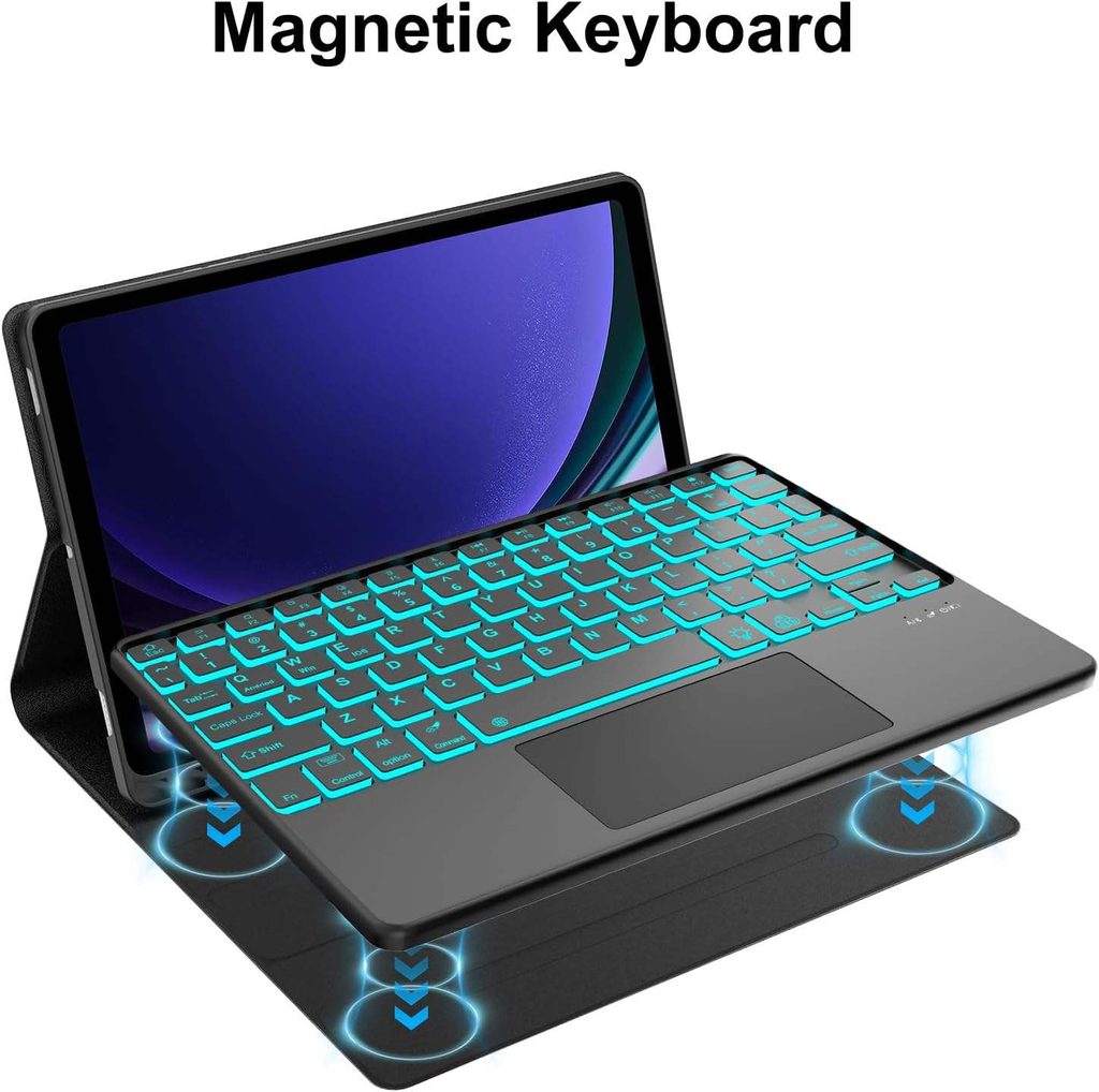 Magnetische Hülle mit abnehmbarer Bluetooth-Tastatur, Touchpad, Beleuchtung und Stylus-Halter verwandelt das Tablet in ein praktisches Arbeitsgerät. Sie bietet eine Kombination aus Schutz, Funktionalität und Komfort bei der Nutzung. Dank hochwertiger Verarbeitung und Unterstützung von Touch-Gesten eignet sie sich zum Schreiben, zur Systemsteuerung, für Büroarbeit und zum Lernen.