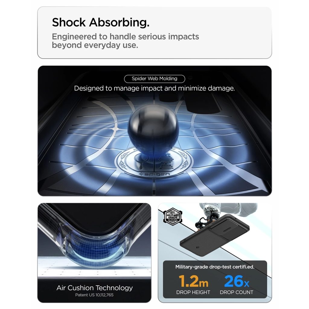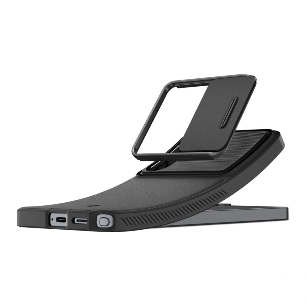 Die Hybrid-Schutzhülle Optik Armor von Spigen bietet hervorragenden Schutz dank der Kombination aus weichem TPU und hartem PC-Material mit verschiebbarer Kameraabdeckung. Sie ist stoßfest, schmutzabweisend und resistent gegen Fingerabdrücke. Das rutschfeste Design sorgt für sicheren Halt und einfache Handhabung.