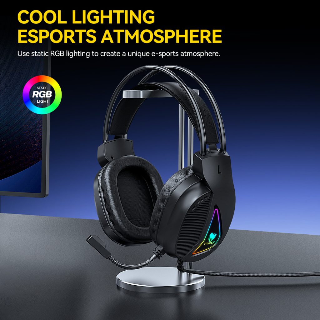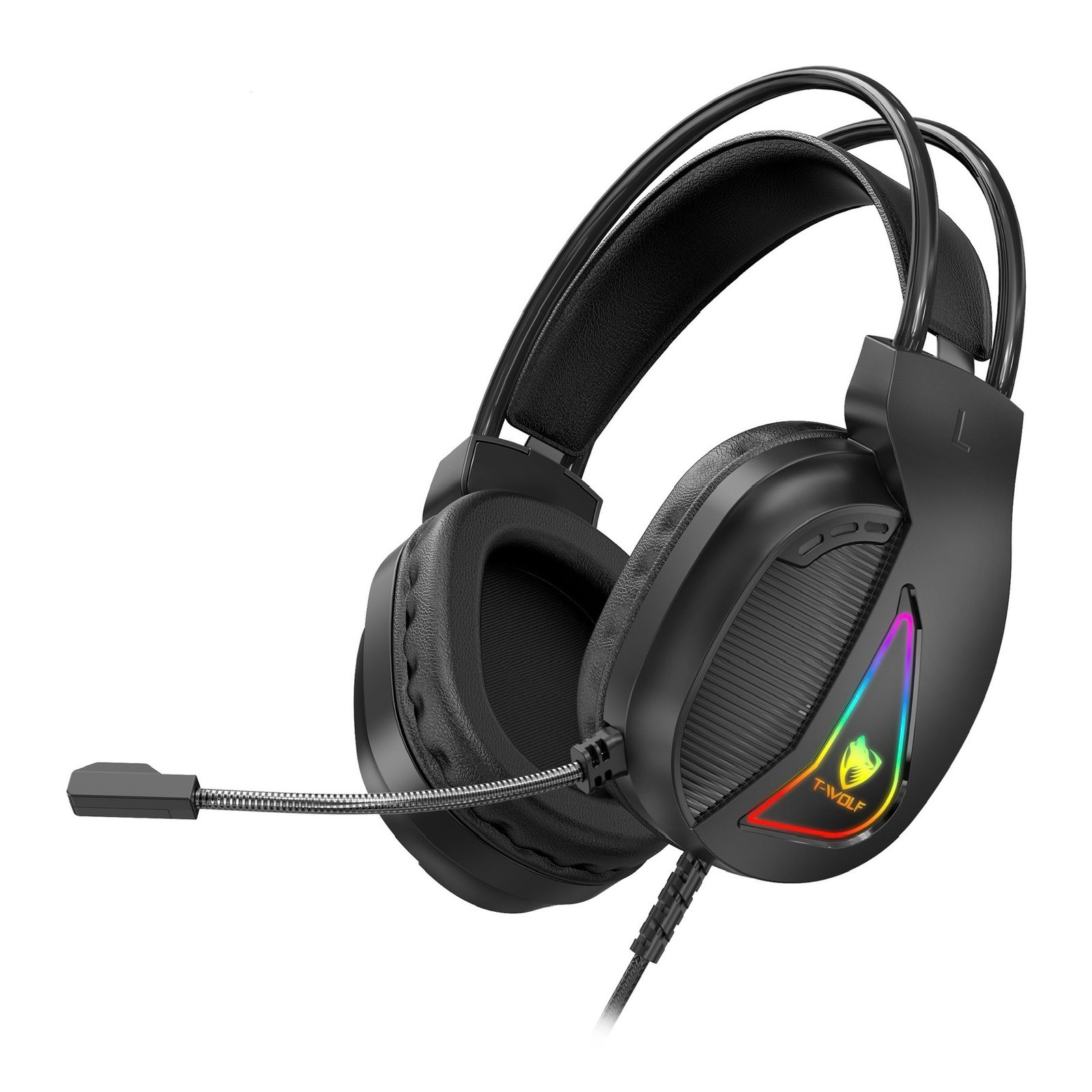 T-WOLF H160 Gaming Headset mit 7.1 Surround Sound - USB Gaming Kopfhörer mit RGB Beleuchtung