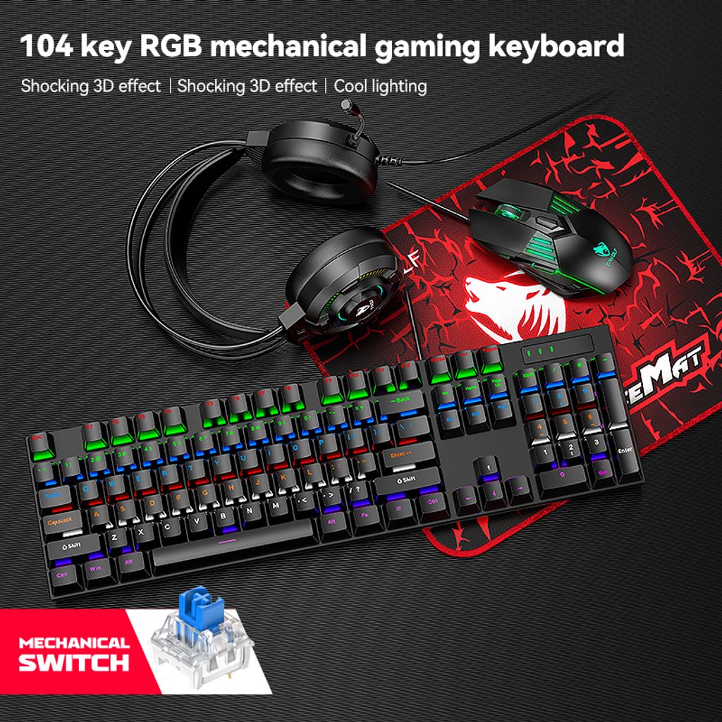 T-WOLF TF700 Gaming Set 4in1 - RGB Tastatur mit Mechanical Feel + Gaming Maus + Headset + Mauspad