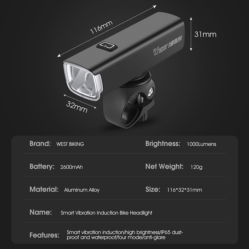 Erhellen Sie jede Ihrer Fahrten mit dem WEST BIKING LED Fahrrad-Vorderlicht. Mit 1000 Lumen bietet es helles und breites Licht, ideal für MTB und E-Bikes, auch bei Dämmerung oder in der Nacht.