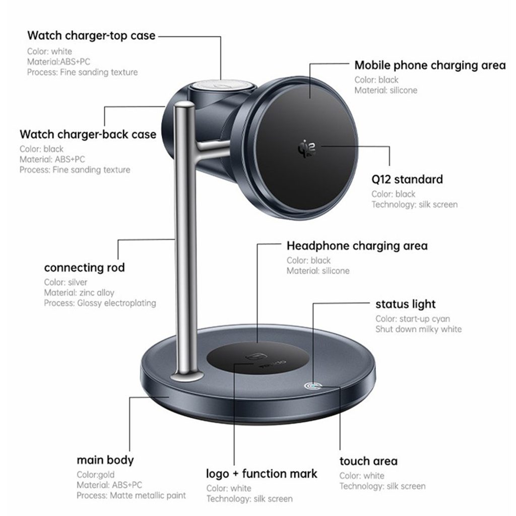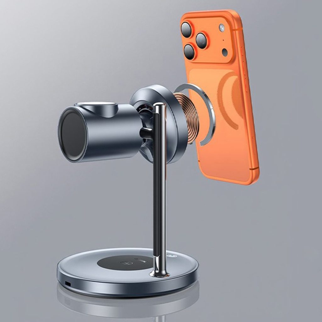 Die moderne Yesido Ladestation bietet eine komfortable und übersichtliche Lösung für das tägliche Aufladen mehrerer Geräte gleichzeitig. Dank magnetischer Befestigung, stabiler Leistung und elegantem Design hält sie Ihr Smartphone, Ihre Smartwatch und Ihre Kopfhörer stets einsatzbereit.